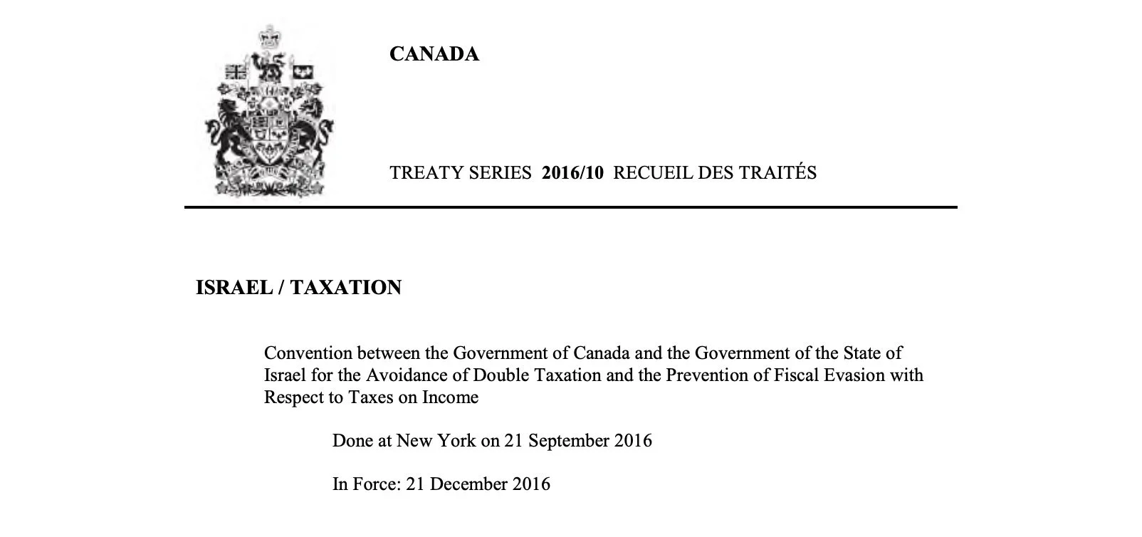 אמנת המס בין קנדה לישראל מ-2026 | לינק לאמנה